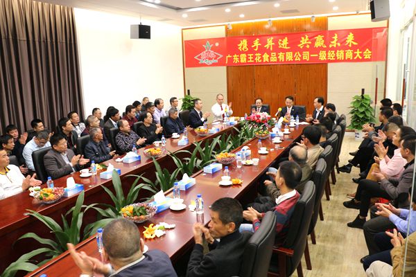 下午15时全国一级经销商大会于霸王花集团会议室开展,霸王花董事长朱日杨、执行总裁朱荣业、食品公司常务副总吴国才、营销总监蓝国波等出席会议,现场高朋满座,由集团办主任吴静波主持,董事长致辞并将食品公司2016年销售状况,集团2016年的回顾及以后的规化发展做出讲话,再由执行总裁宣布2016年获奖项经销商名单,并向销量前五名经销商“杰出贡献奖”进行颁奖。过后营销总监蓝国波分享突出市场运营模式,让资源分享。会议结束后经销商一行参观了霸王花旗下地产公司、河源中学实验学校、霸王花食品公司。