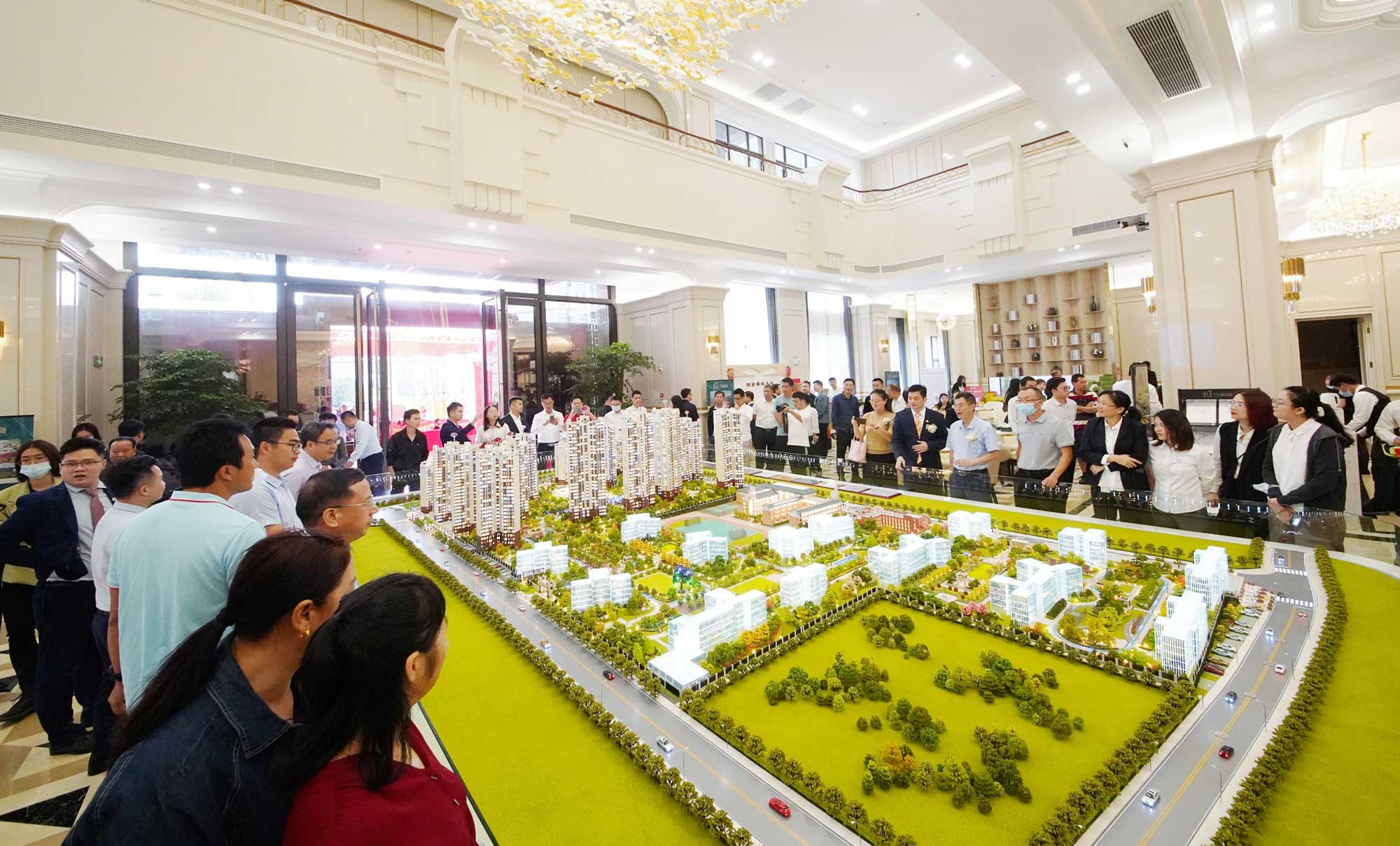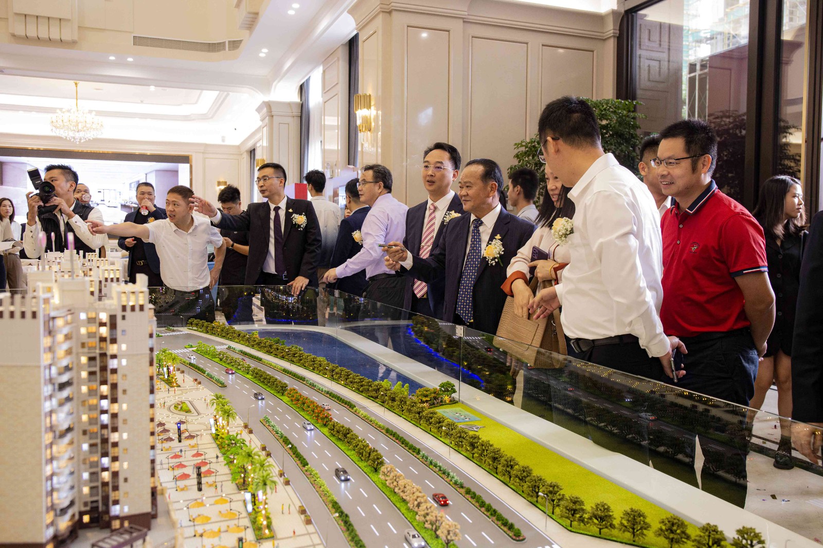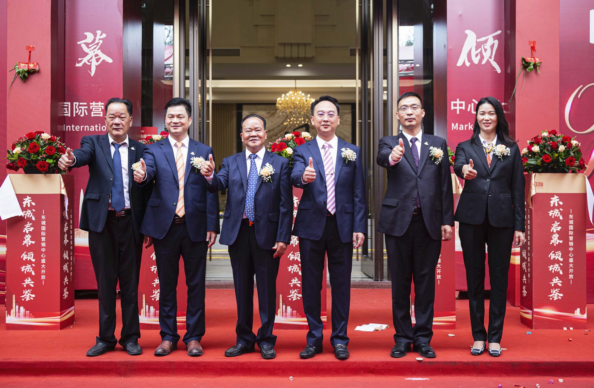 随后,朱日杨董事长、朱荣业总裁、陈骏良副总裁、朱利昀副总裁兼财务总监、陈永辉常务副总经理、刘显花副总经理,共同为霸王花˙东城国际项目营销中心剪彩。