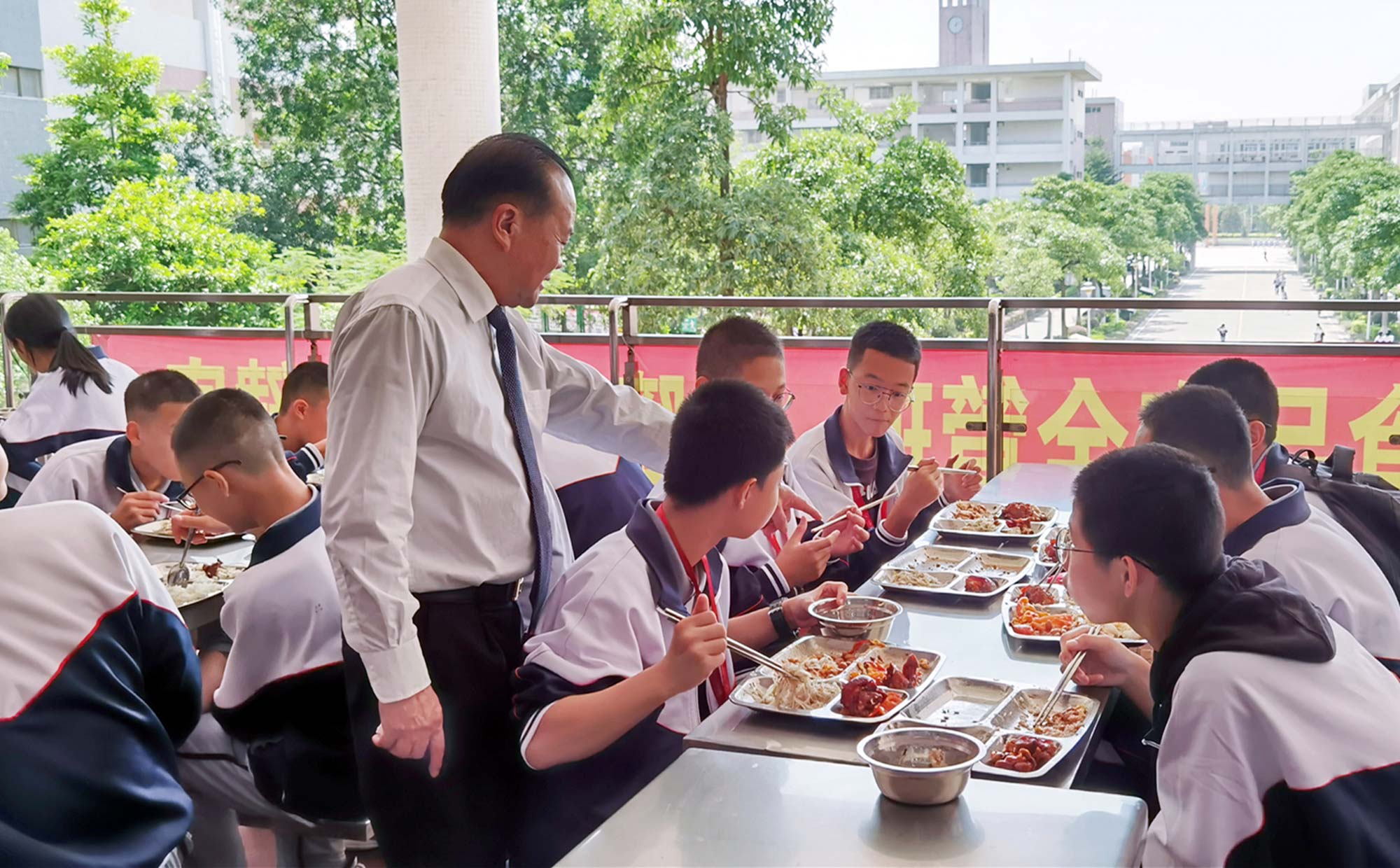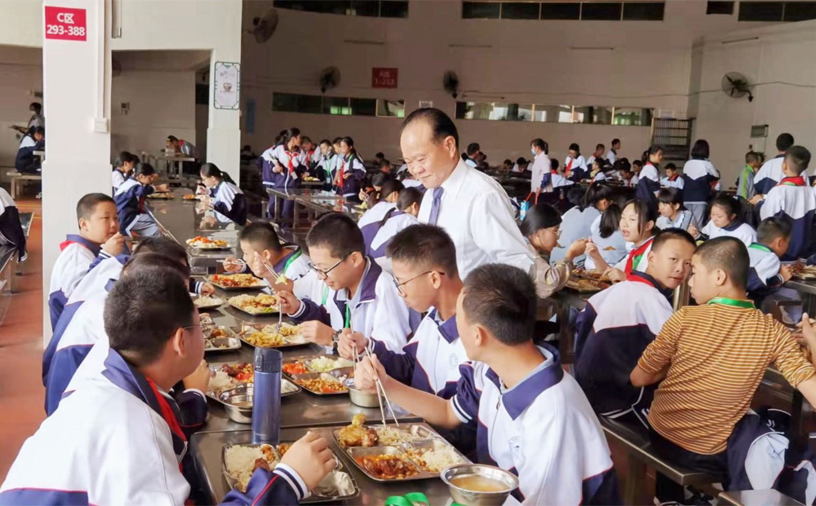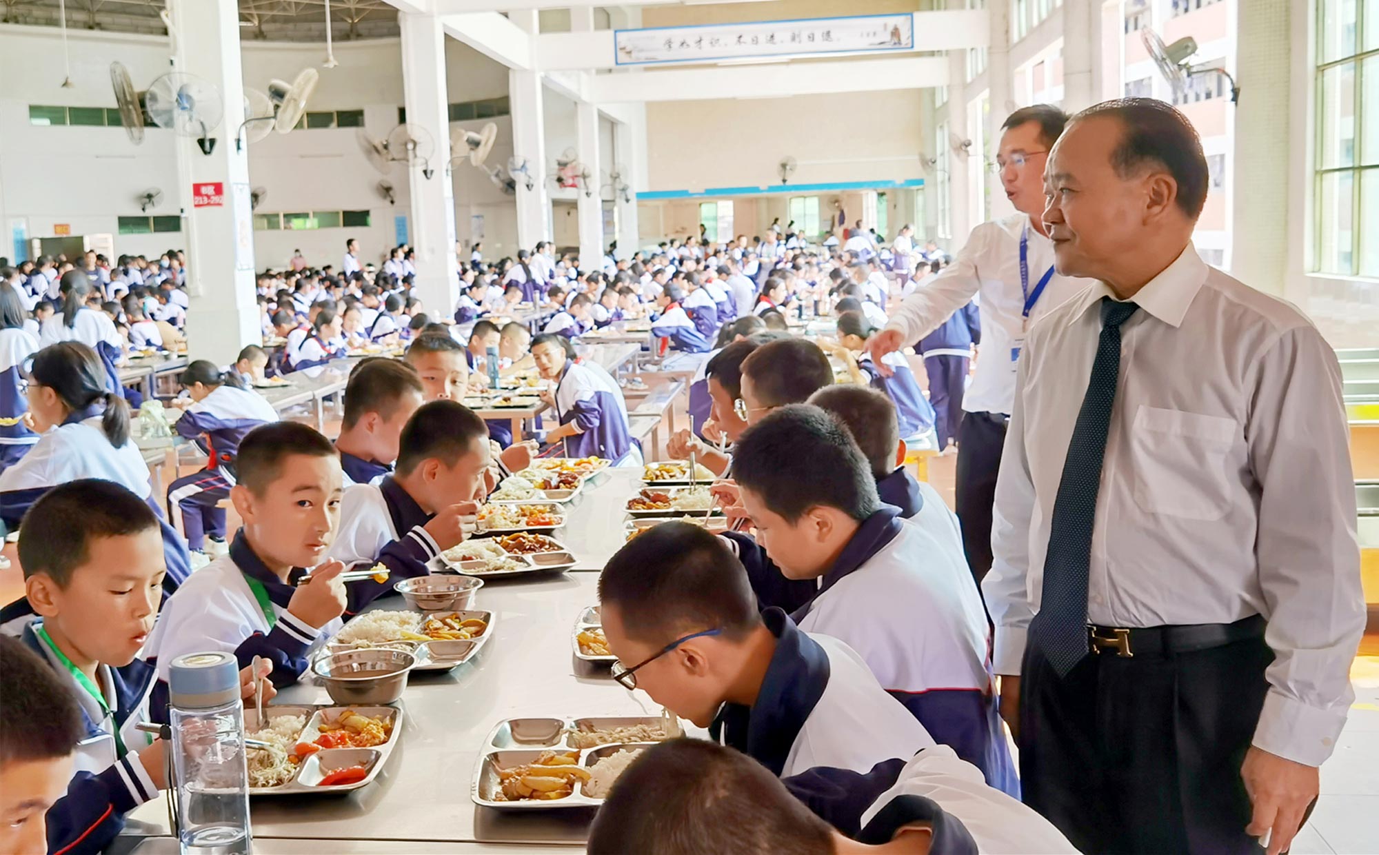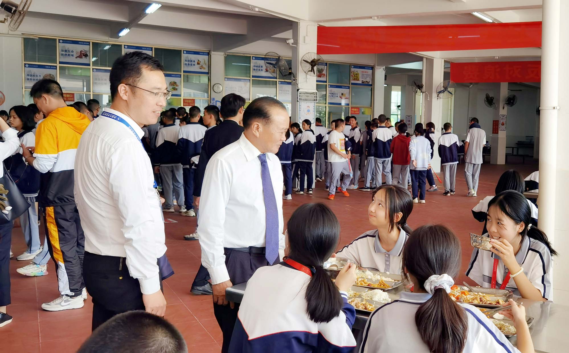 集团董事长朱日杨、常务副校长谢辉华了解师生用餐情况