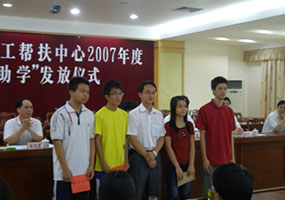 2007年8月21日,朱荣业总经理(前排左三)与受资助贫困大学生合影