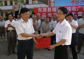 2007年06月,我司总经理朱荣业(右一)慰问东源县福利院捐赠